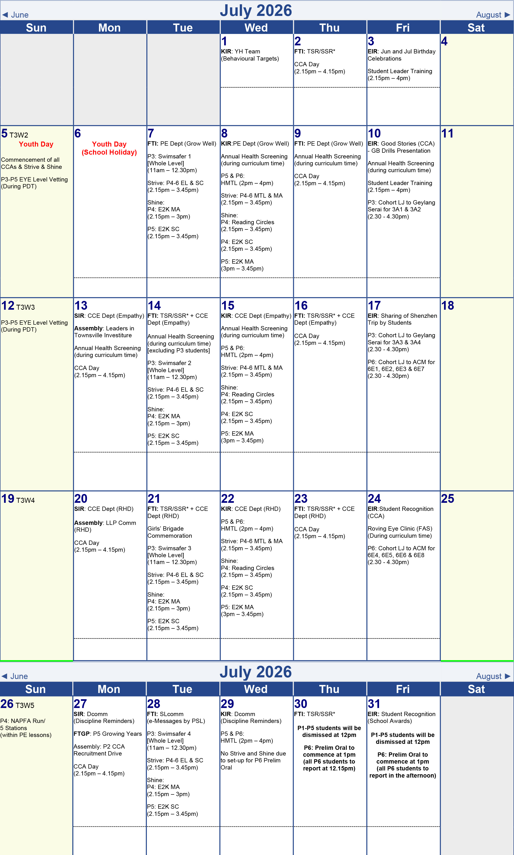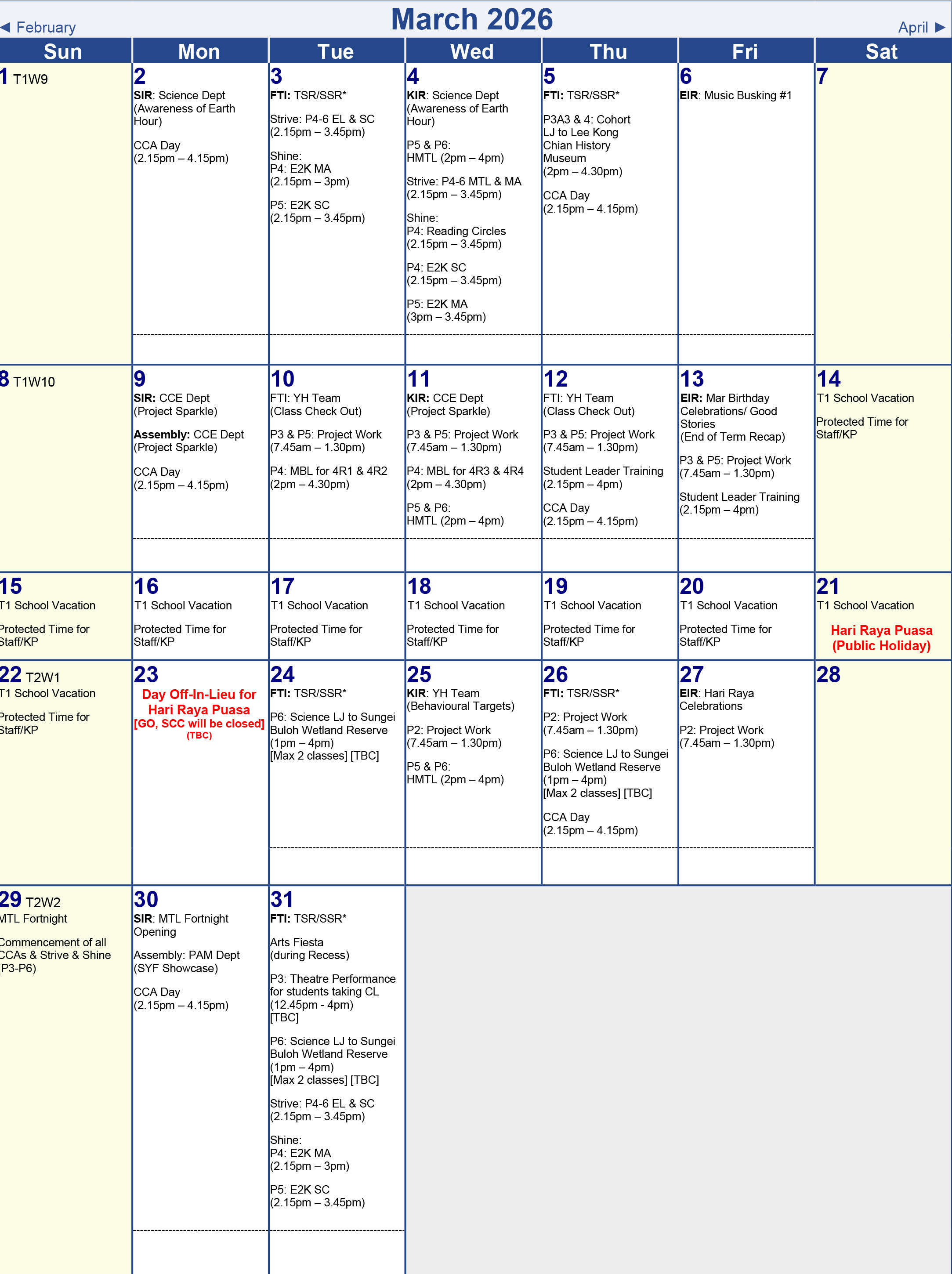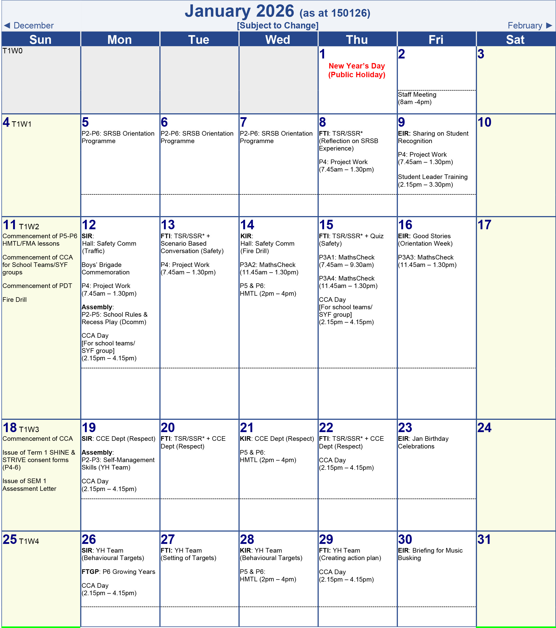 Term 1 Calendar