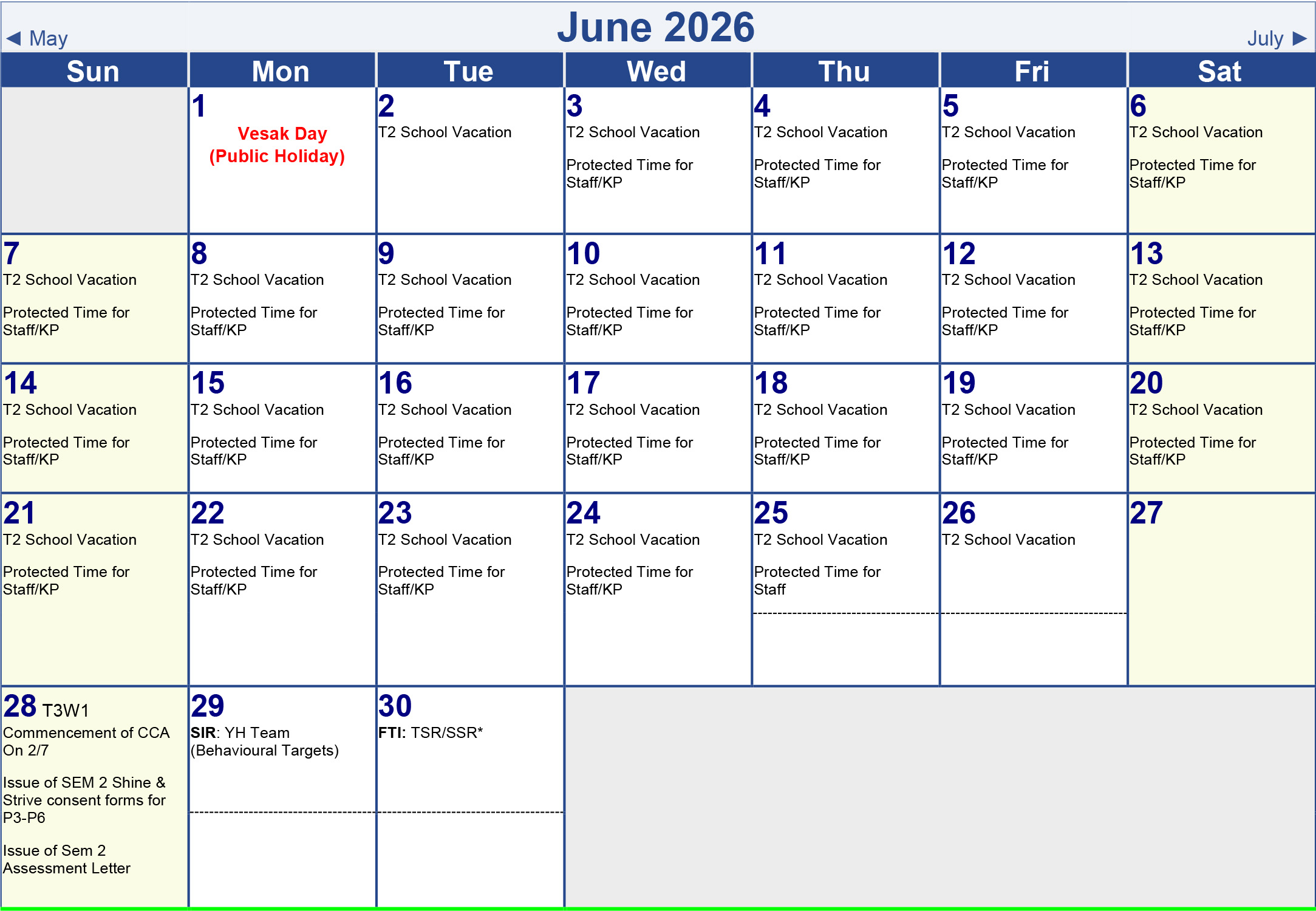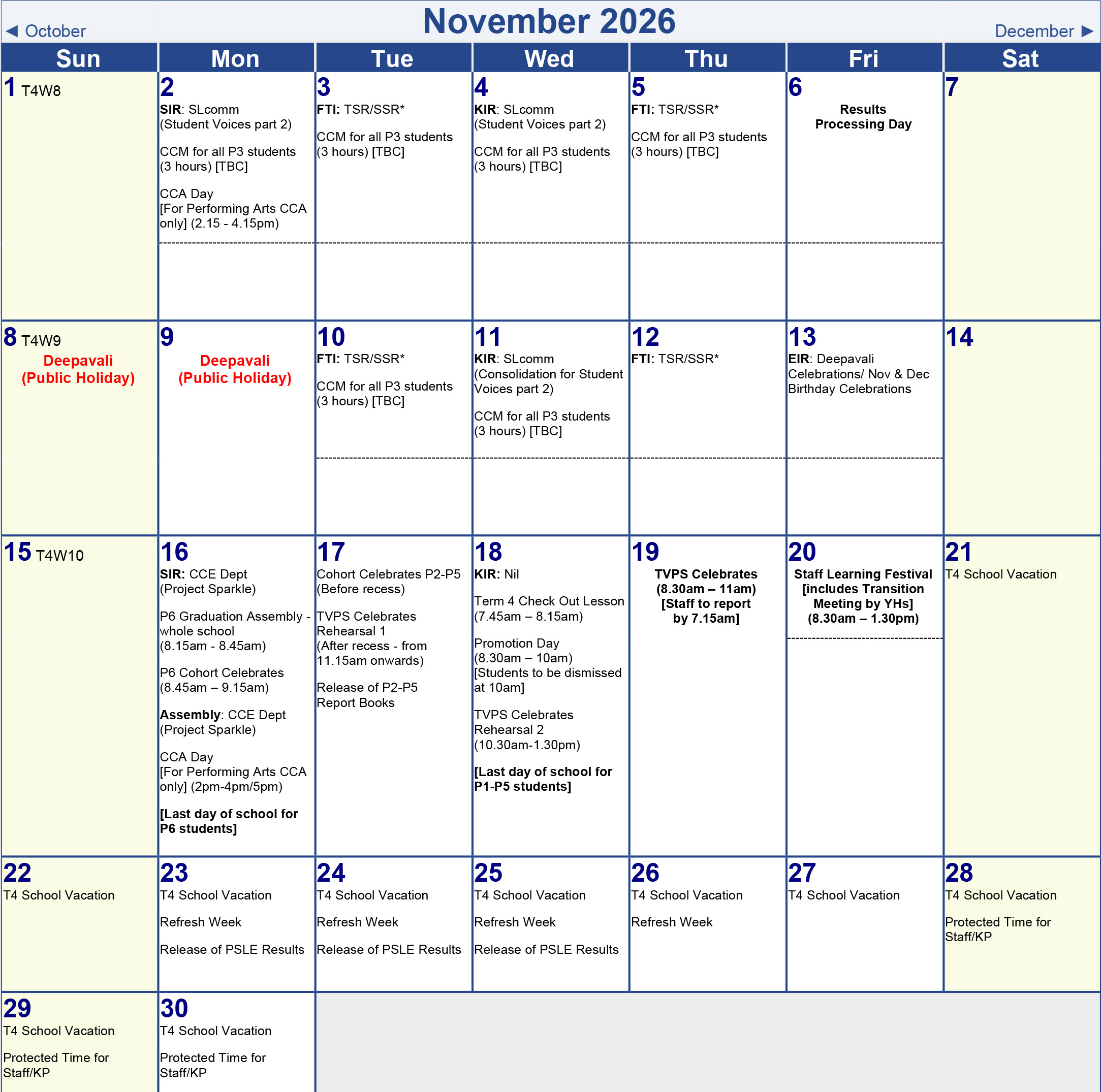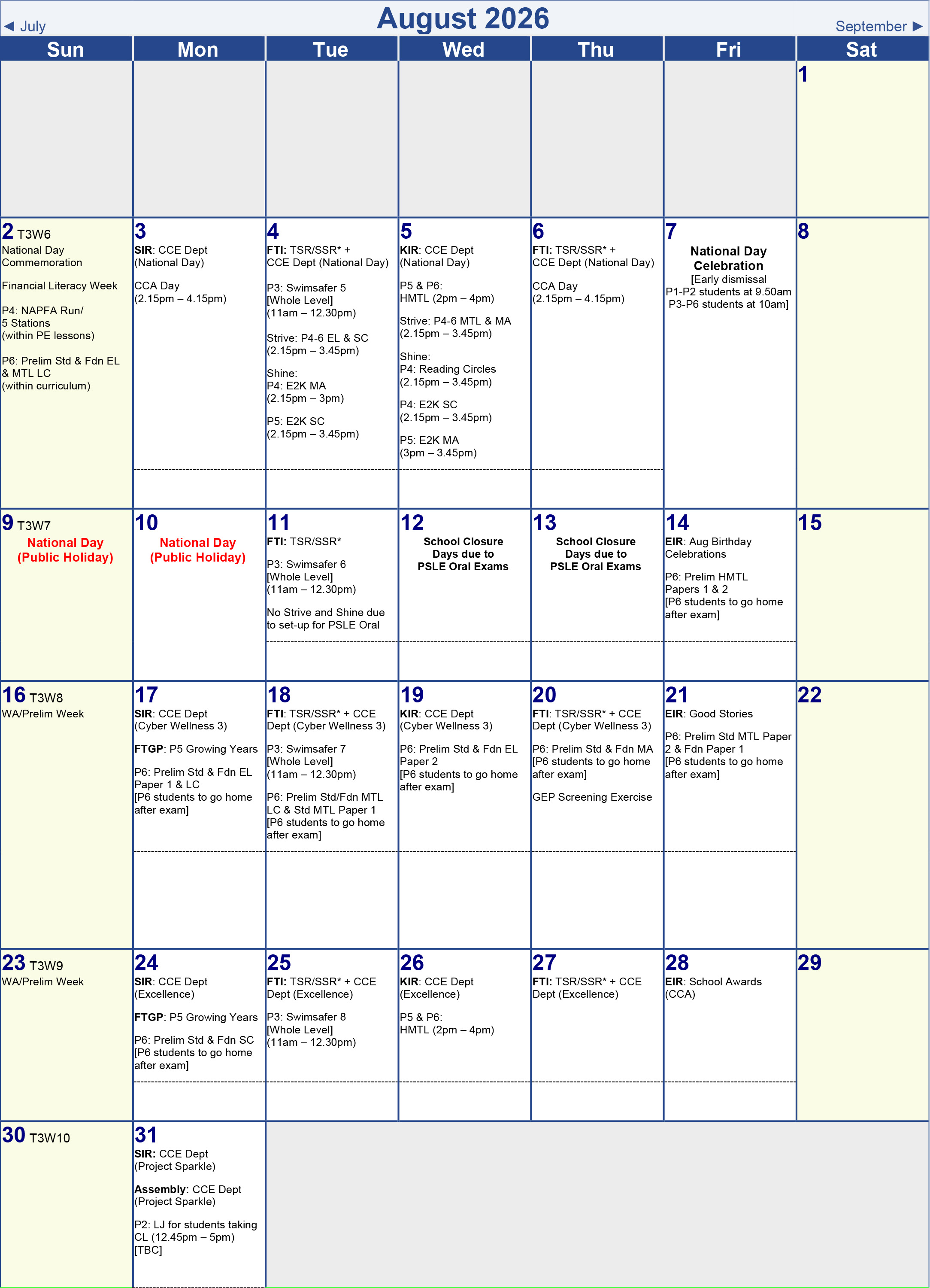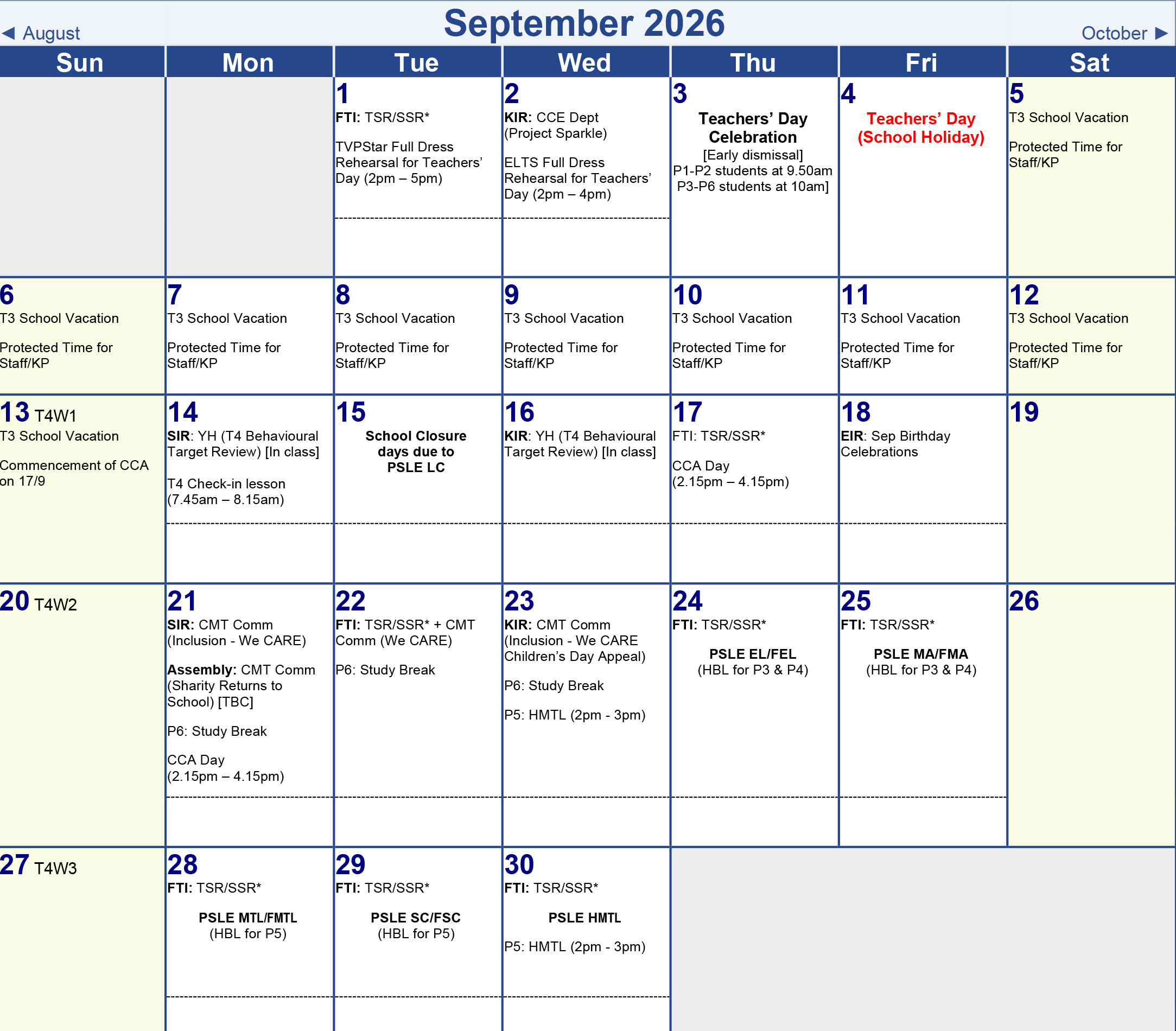 Term 1 Calendar
